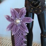 Kum boncuklarla kahverenginin tonlarıyla yapılan bu katmerli kolye bir tanesi bile tam üç katlıdır. Yani büyük çiçek tam üç katlı ve 11 cm çapındadır. Diğer iki çiçek iki katlı olup 25 cm uzunluğundadır. Çiçeklerden boyun arkasına kadar toplam 40 cm e yakındır.